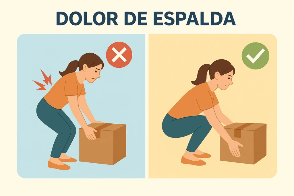 Levantar objetos pesados sin flexionar las rodillas, torcer la columna o hacer esfuerzo excesivo genera sobrecarga en los discos, agravando la lesión.
