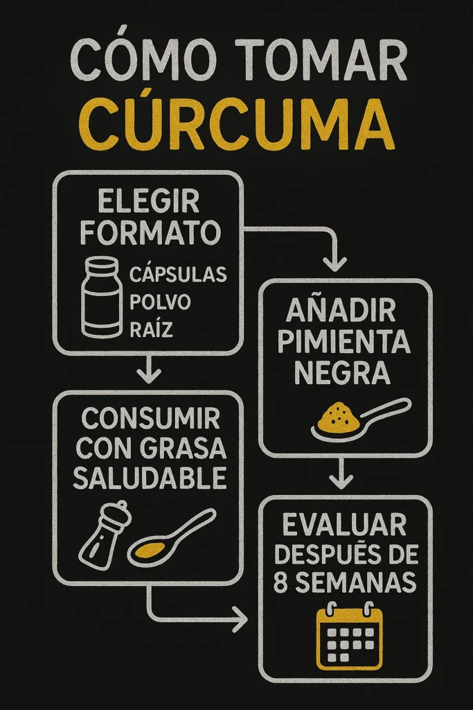 Para aprovechar al máximo los beneficios de la cúrcuma, sigue estas recomendaciones: